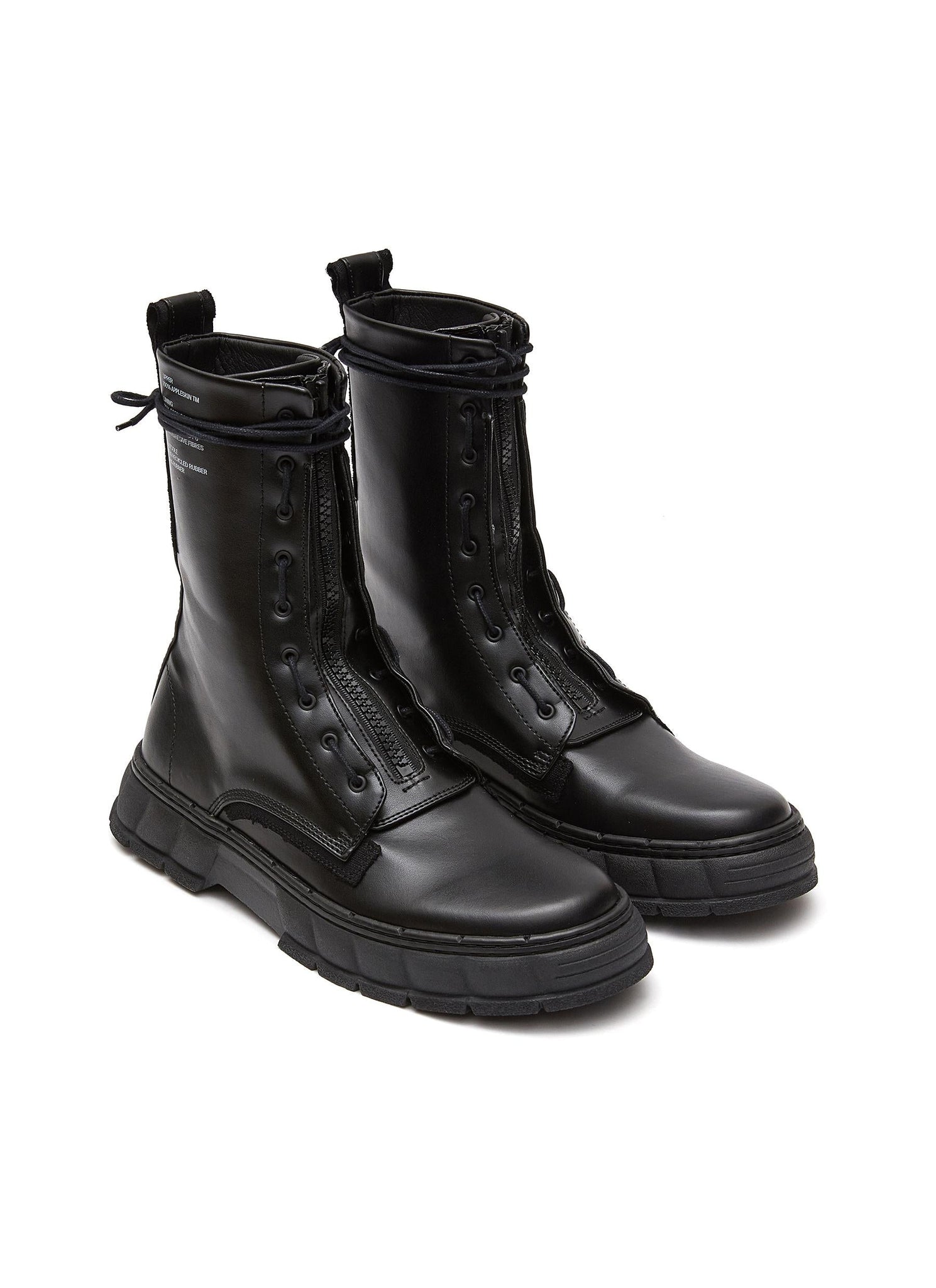 Designed with sustainability in mind, Virón presents these 1992 combat boots, artfully crafted from AppleSkin™, an innovative bio-based leather alternative that is safer for the planet Earth. Set atop a chunky recycled rubber sole to exude a subversive allure, this pair serves as the perfect addition to your streetwear edits.